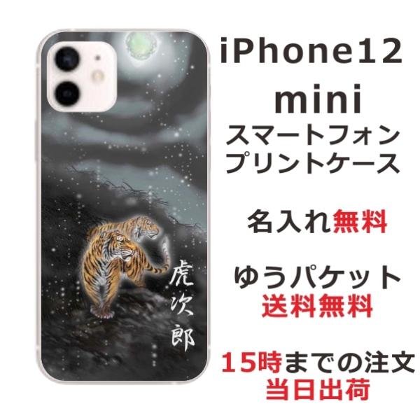 iPhone12 Mini ケース アイフォン12ミニ カバー らふら 名入れ 和柄 闇夜双虎