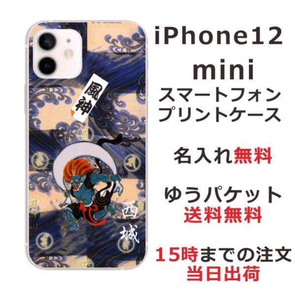 iPhone12 Mini ケース アイフォン12ミニ カバー らふら 名入れ 和柄 風神