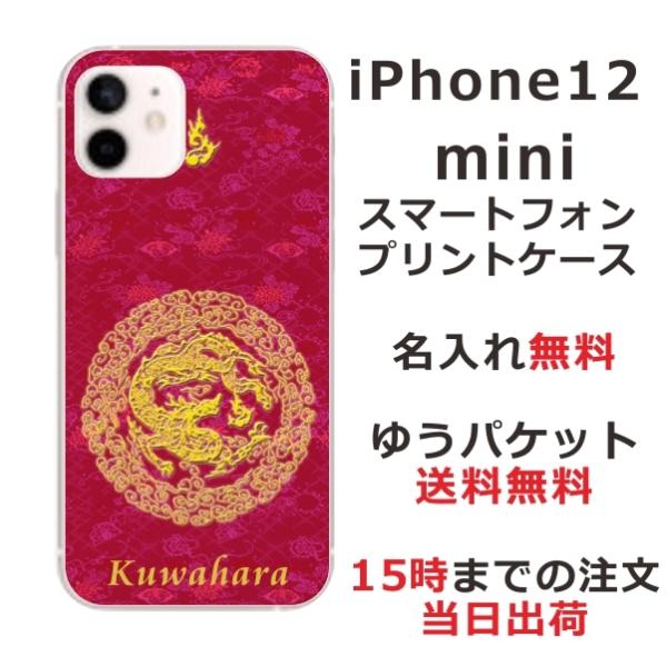 iPhone12 Mini ケース アイフォン12ミニ カバー らふら 名入れ 和柄 円龍赤