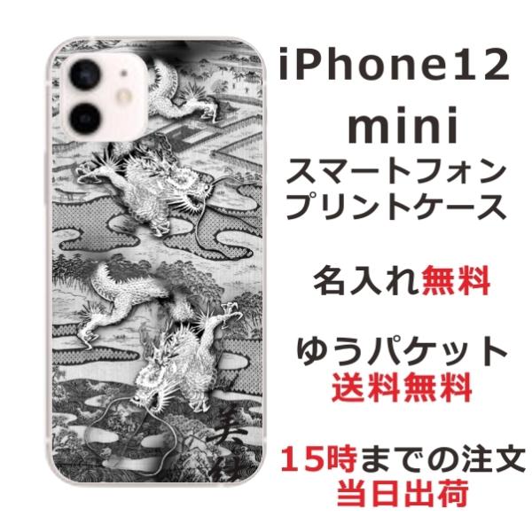 iPhone12 Mini ケース アイフォン12ミニ カバー らふら 名入れ 和柄 水墨双龍