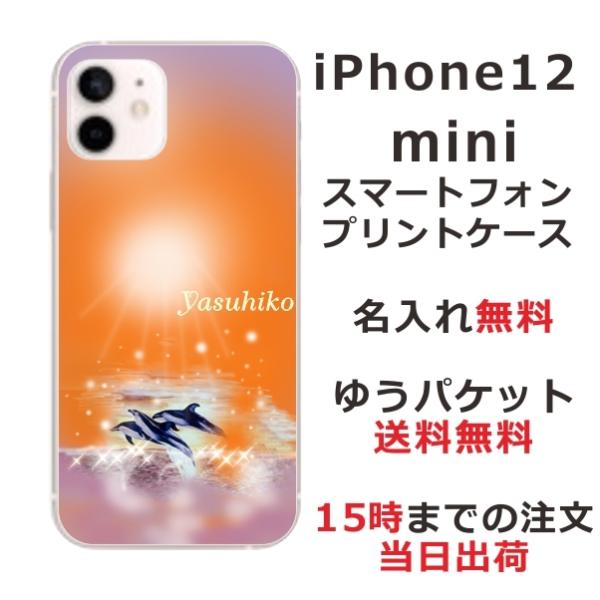 iPhone12 Mini ケース アイフォン12ミニ カバー らふら 名入れ ドルフィン サンセット