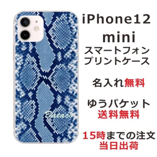 iPhone12 Mini ケース アイフォン12ミニ カバー らふら 名入れ へび柄 ブルー