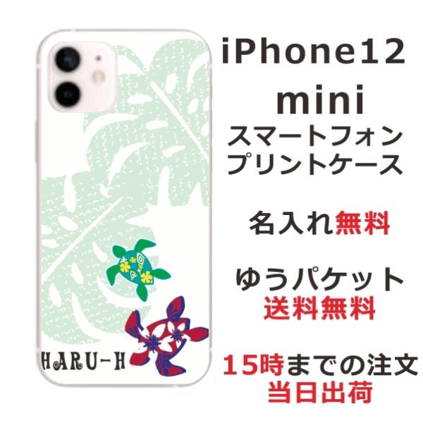 iPhone12 Mini ケース アイフォン12ミニ カバー らふら 名入れ ハワイアン ホヌ