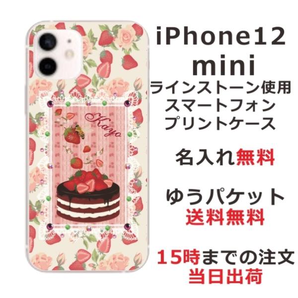 iPhone12 Mini ケース アイフォン12ミニ カバー ラインストーン かわいい らふら 名入れ ストロベリーケーキ