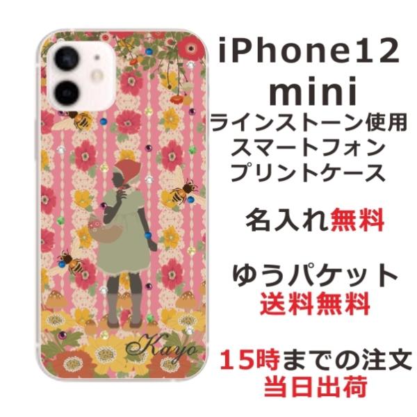 iPhone12 Mini ケース アイフォン12ミニ カバー ラインストーン かわいい らふら 名入れ 赤ずきんちゃん