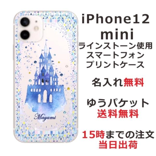iPhone12 Mini ケース アイフォン12ミニ カバー ラインストーン かわいい らふら 名入れ キャッスル