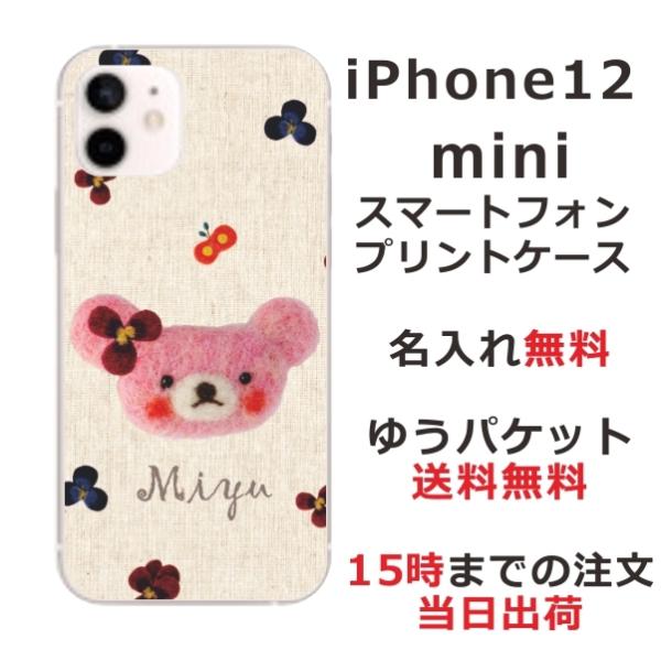 iPhone12 Mini ケース アイフォン12ミニ カバー らふら 名入れ フェルト風プリントベア