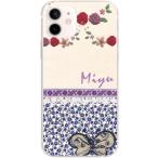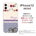iPhone12 Mini ケース アイフォン12ミニ カバー らふら 名入れ 蝶 パープルフラワー