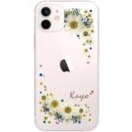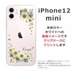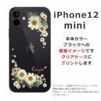 iPhone12 Mini ケース アイフォン12ミニ カバー ラインストーン かわいい フラワー 花柄 らふら 名入れ 押し花風 フラワリー ホワイト