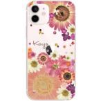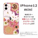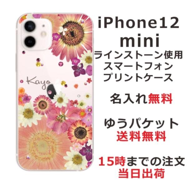 iPhone12 Mini ケース アイフォン12ミニ カバー ラインストーン かわいい フラワー 花柄 らふら 名入れ 押し花風 フラワーアレンジピンク