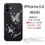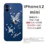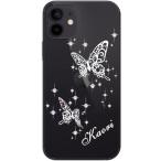 iPhone12 Mini ケース アイフォン12ミニ カバー ラインストーン かわいい らふら 名入れ バタフライ