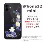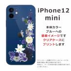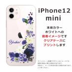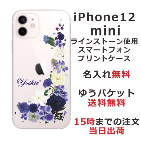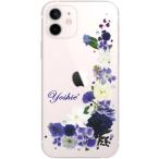 iPhone12 Mini ケース アイフォン12ミニ カバー ラインストーン かわいい フラワー 花柄 らふら 名入れ 押し花風 ブルーアレンジ