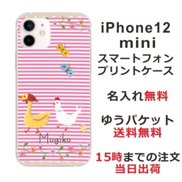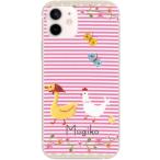 iPhone12 Mini ケース アイフォン12ミニ カバー らふら 名入れ あひる にわとり 行進