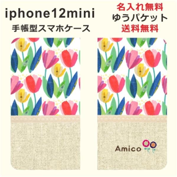 iPhone12 Mini 手帳型ケース アイフォン12ミニ ブックカバー らふら 北欧デザイン チューリップ