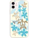 iPhone12 ケース アイフォン12 カバー らふら 名入れ ハワイアン ブルー ホヌ