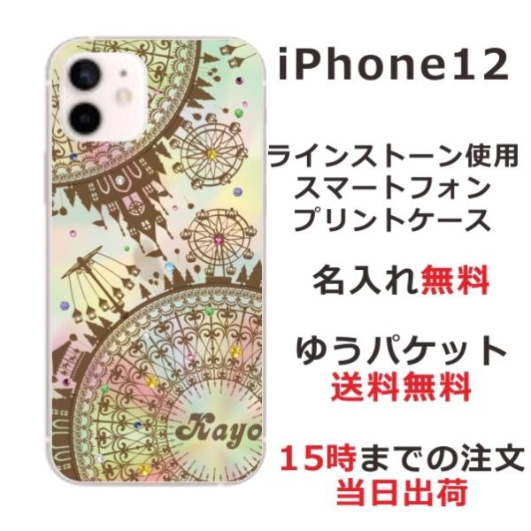 iPhone12 ケース アイフォン12 カバー ラインストーン かわいい らふら 名入れ 遊園地