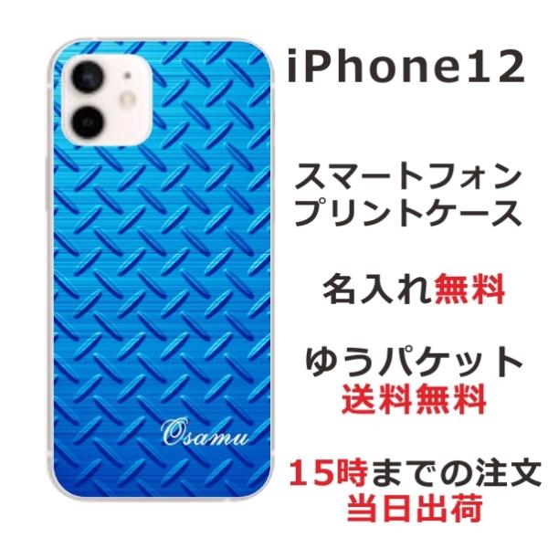 iPhone12 ケース アイフォン12 カバー らふら 名入れ メタル ブルー