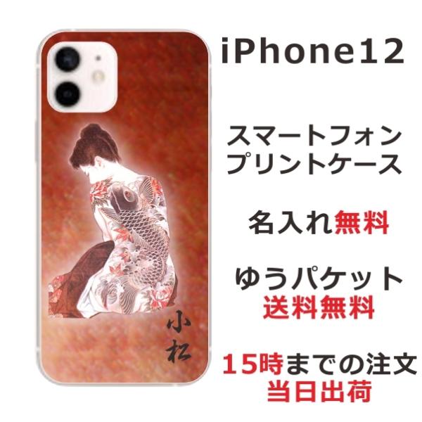 iPhone12 ケース アイフォン12 カバー らふら 名入れ 和柄 艶女昇鯉