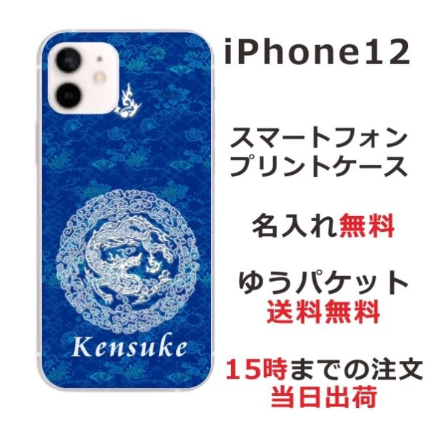 iPhone12 ケース アイフォン12 カバー らふら 名入れ 和柄 円龍青