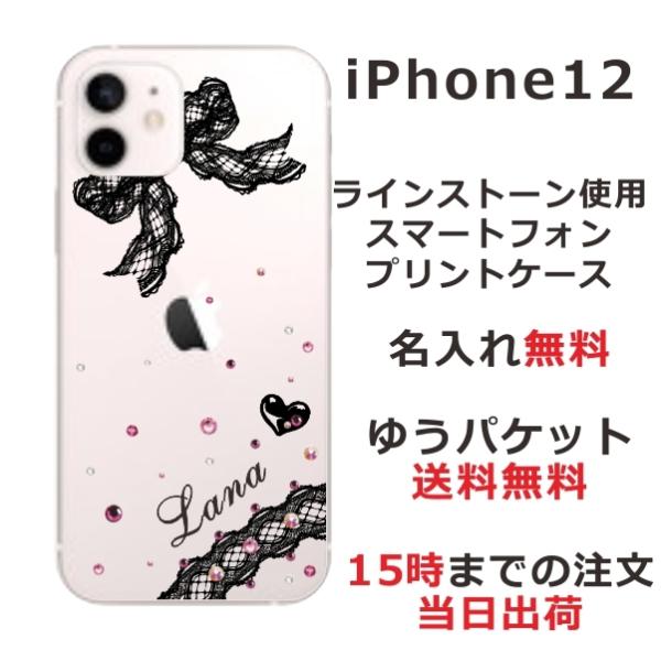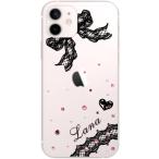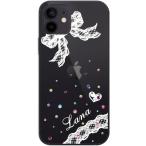 iPhone12 ケース アイフォン12 カバー ラインストーン かわいい らふら 名入れ レースリボン