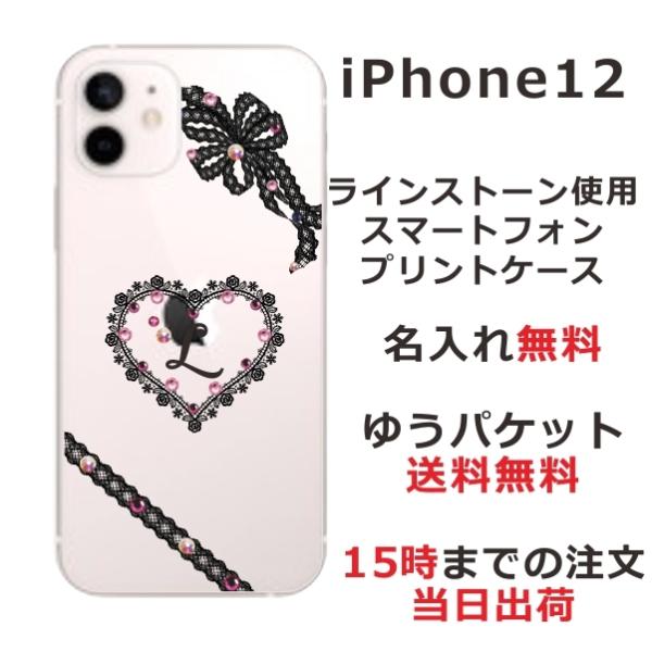iPhone12 ケース アイフォン12 カバー ラインストーン かわいい らふら 名入れ ハートレース