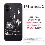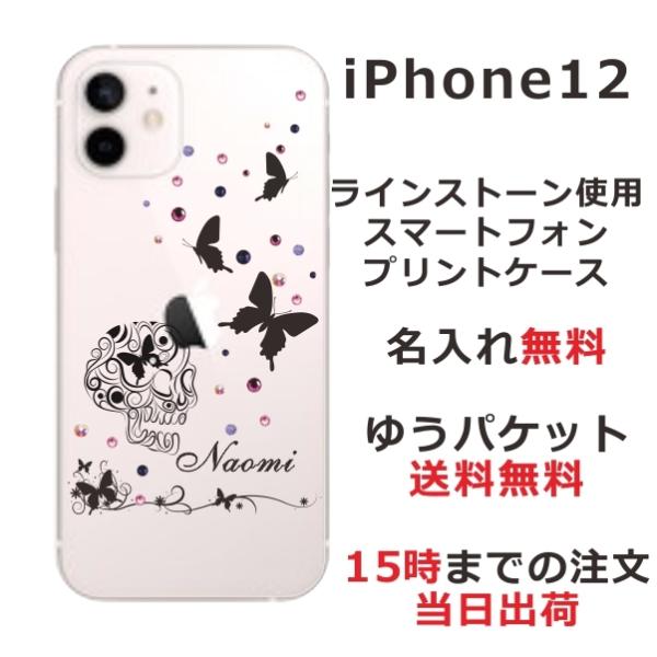 iPhone12 ケース アイフォン12 カバー ラインストーン かわいい らふら 名入れ スカルバタフライ