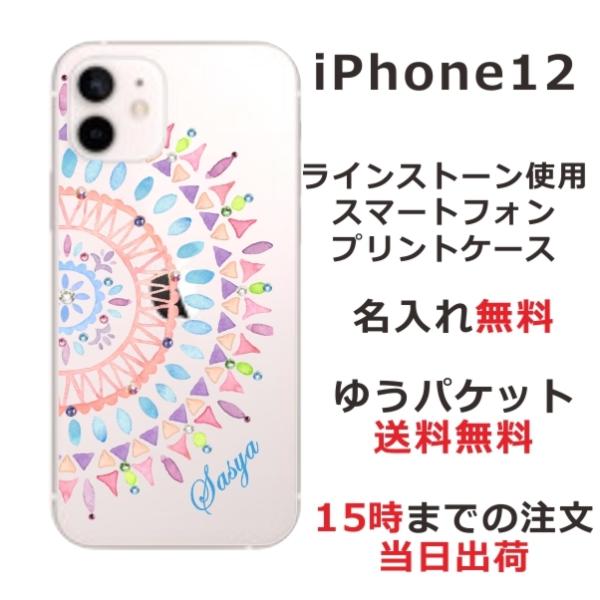iPhone12 ケース アイフォン12 カバー ラインストーン かわいい らふら 名入れ エスニック
