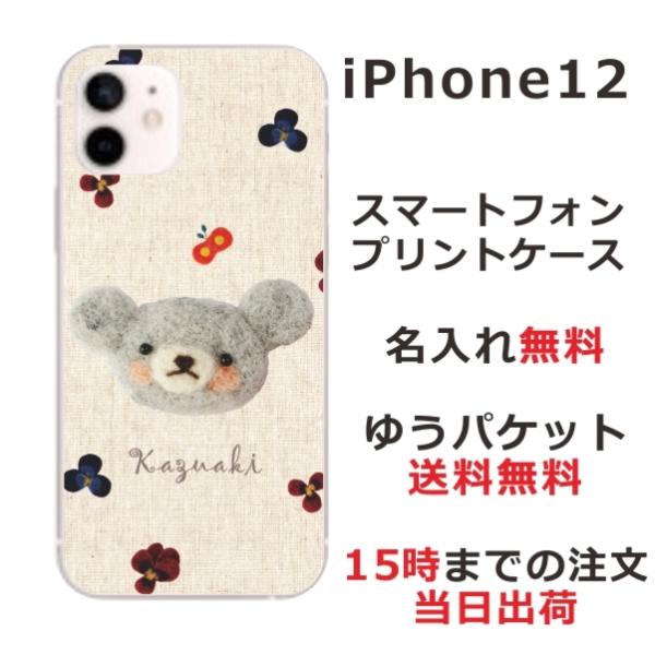 iPhone12 ケース アイフォン12 カバー らふら 名入れ フェルト風プリントベア