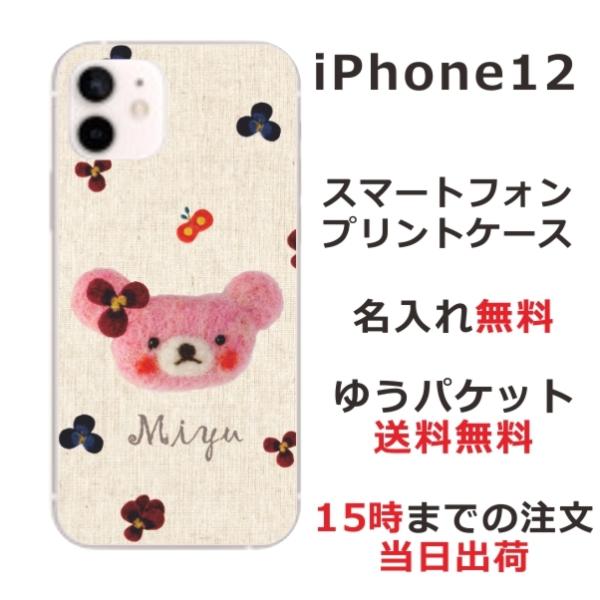 iPhone12 ケース アイフォン12 カバー らふら 名入れ フェルト風プリントベア