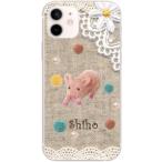 iPhone12 ケース アイフォン12 カバー らふら 名入れ コットンレース風 ブタ