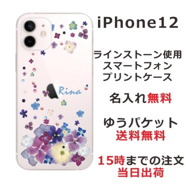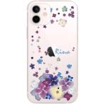 iPhone12 ケース アイフォン12 カバー ラインストーン かわいい フラワー 花柄 らふら 名入れ 押し花風 デコレーション パープル