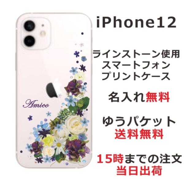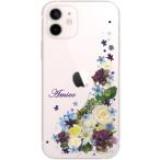 iPhone12 ケース アイフォン12 カバー ラインストーン かわいい フラワー 花柄 らふら 名入れ 押し花風 ナチュラルフラワー