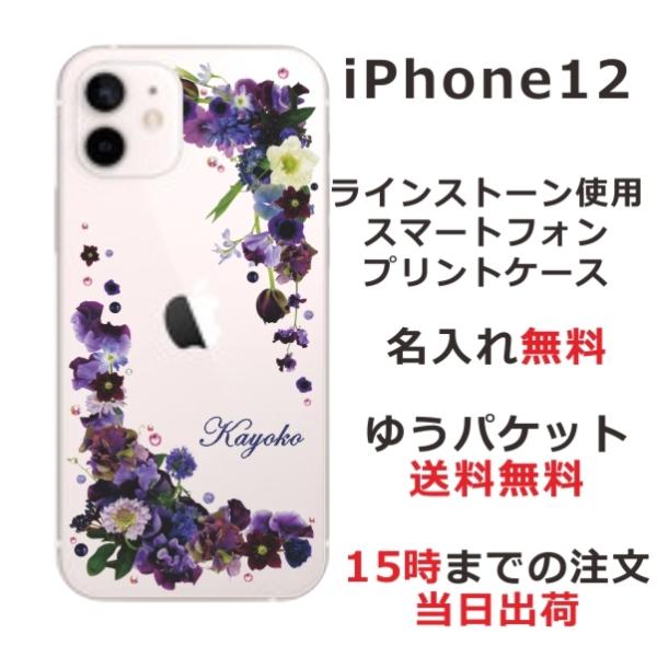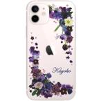 iPhone12 ケース アイフォン12 カバー ラインストーン かわいい フラワー 花柄 らふら 名入れ 押し花風 パープルアレンジ