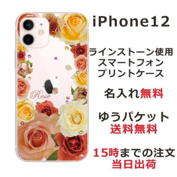 iPhone12 ケース アイフォン12 カバー ラインストーン かわいい フラワー 花柄 らふら 名入れ 押し花風 バラ