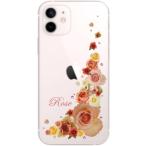 iPhone12 ケース アイフォン12 カバー ラインストーン かわいい フラワー 花柄 らふら 名入れ 押し花風 バラ