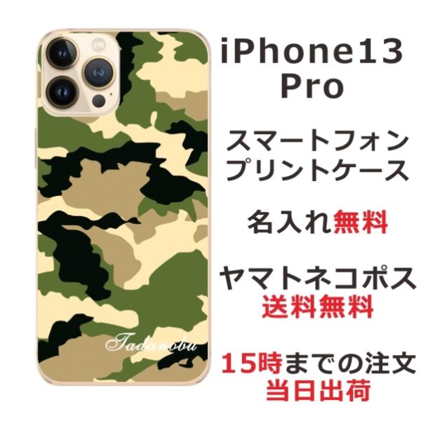 iPhone13 Pro アイフォン13プロ らふら 名入れ スマホケース 迷彩 グリーン