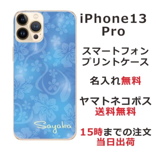 iPhone13 Pro アイフォン13プロ らふら 名入れ スマホケース ハイビスカスブルー