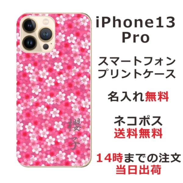 iPhone13 Pro アイフォン13プロ らふら 名入れ スマホケース 和柄 桜ピンク