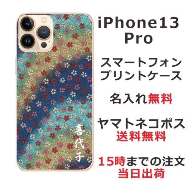 iPhone13 Pro アイフォン13プロ らふら 名入れ スマホケース 和柄 和小花ブルーグラデ