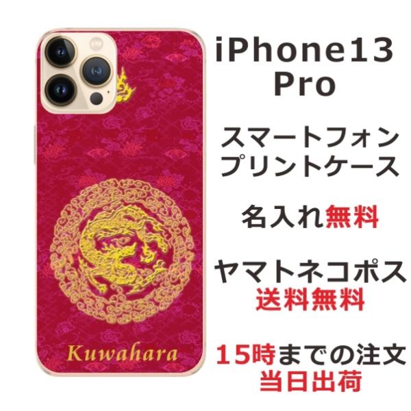 iPhone13 Pro アイフォン13プロ らふら 名入れ スマホケース 和柄 円龍赤