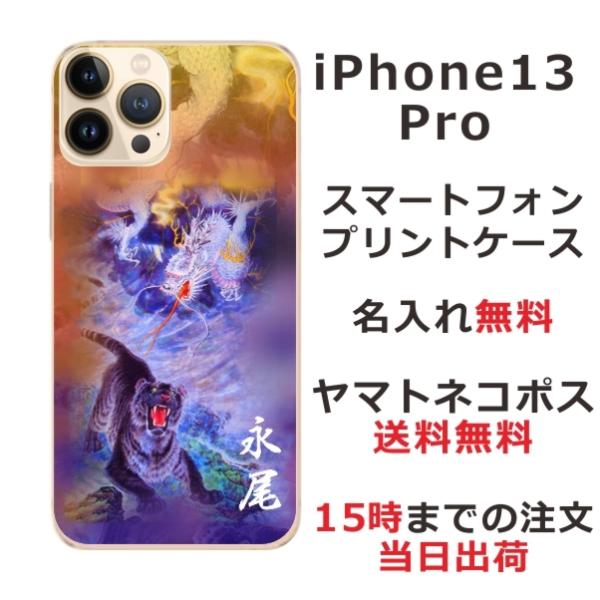 iPhone13 Pro アイフォン13プロ らふら 名入れ スマホケース 和柄 龍虎蒼橙