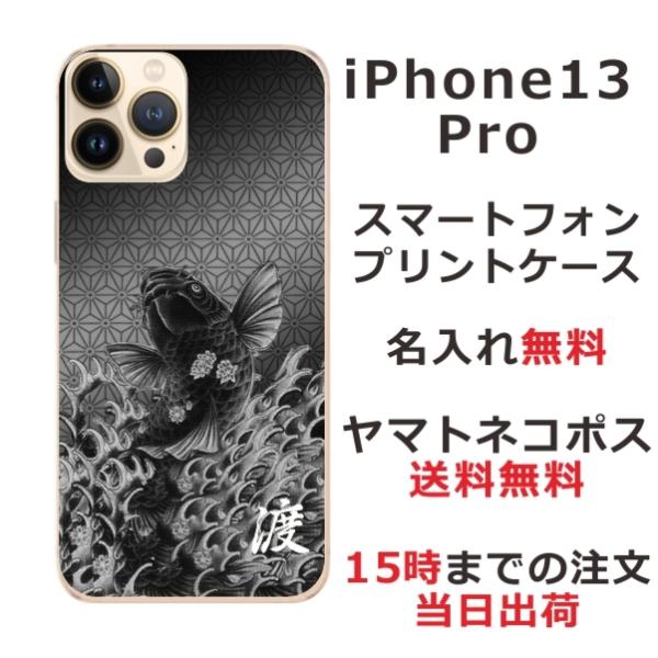 iPhone13 Pro アイフォン13プロ らふら 名入れ スマホケース 和柄 昇り鯉黒