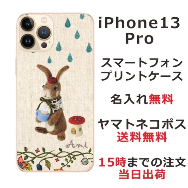 iPhone13 Pro アイフォン13プロ らふら 名入れ スマホケース 雨降りうさぎ