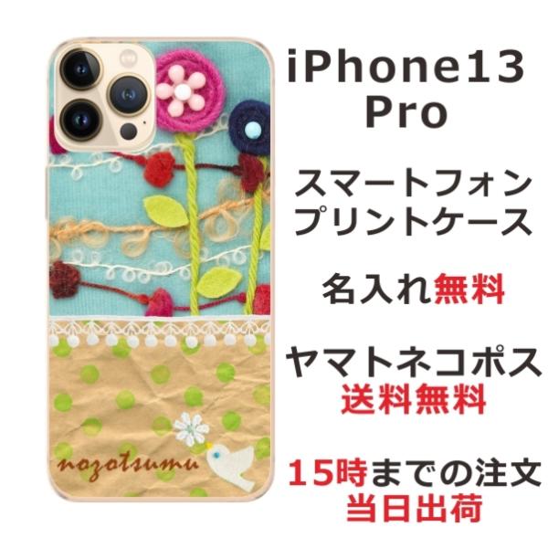 iPhone13 Pro アイフォン13プロ らふら 名入れ スマホケース キルトフラワーブルー