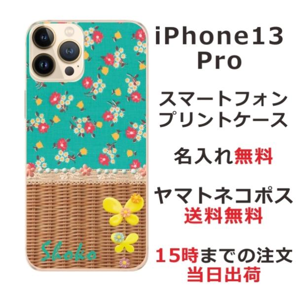 iPhone13 Pro アイフォン13プロ らふら 名入れ スマホケース フラワー 籐