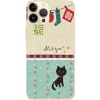 iPhone13 Pro アイフォン13プロ らふら 名入れ スマホケース 黒猫 洗濯物