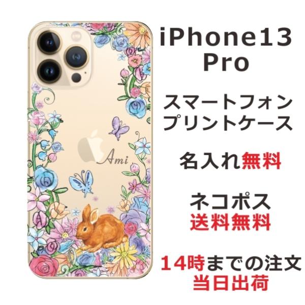 iPhone13 Pro アイフォン13プロ らふら 名入れ スマホケース お花畑 ウサギ