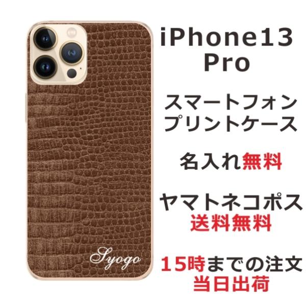 iPhone13 Pro アイフォン13プロ らふら 名入れ スマホケース クロコダイル ブラウン