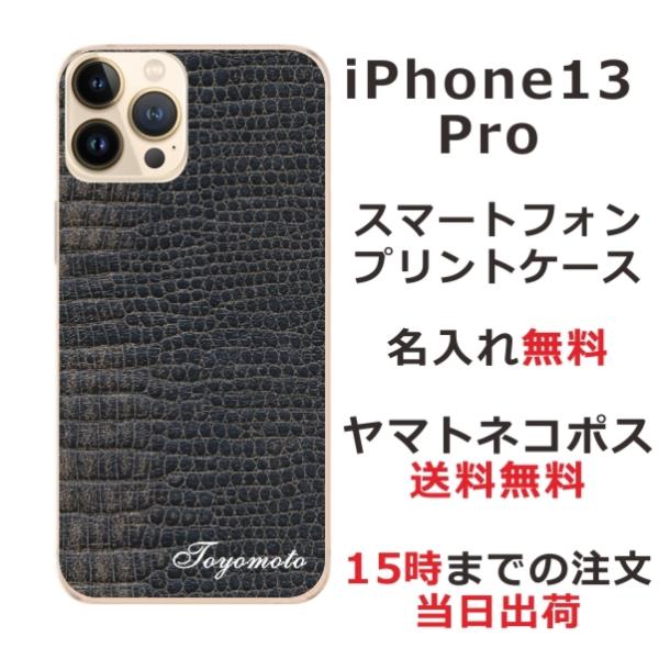 iPhone13 Pro アイフォン13プロ らふら 名入れ スマホケース クロコダイル ブラック
