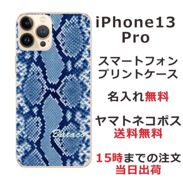 iPhone13 Pro アイフォン13プロ らふら 名入れ スマホケース へび柄 ブルー